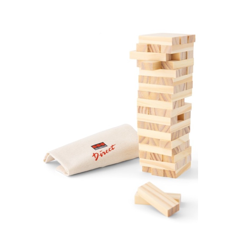 Juego de mesa de madera con 54 bloques, presentado en funda de algodón.