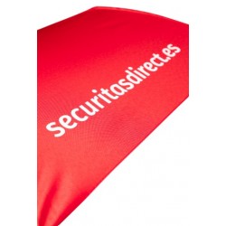 Paraguas de 8 paneles de apertura automática, varillas metálicas en color negro, tira con cierre de velcro.